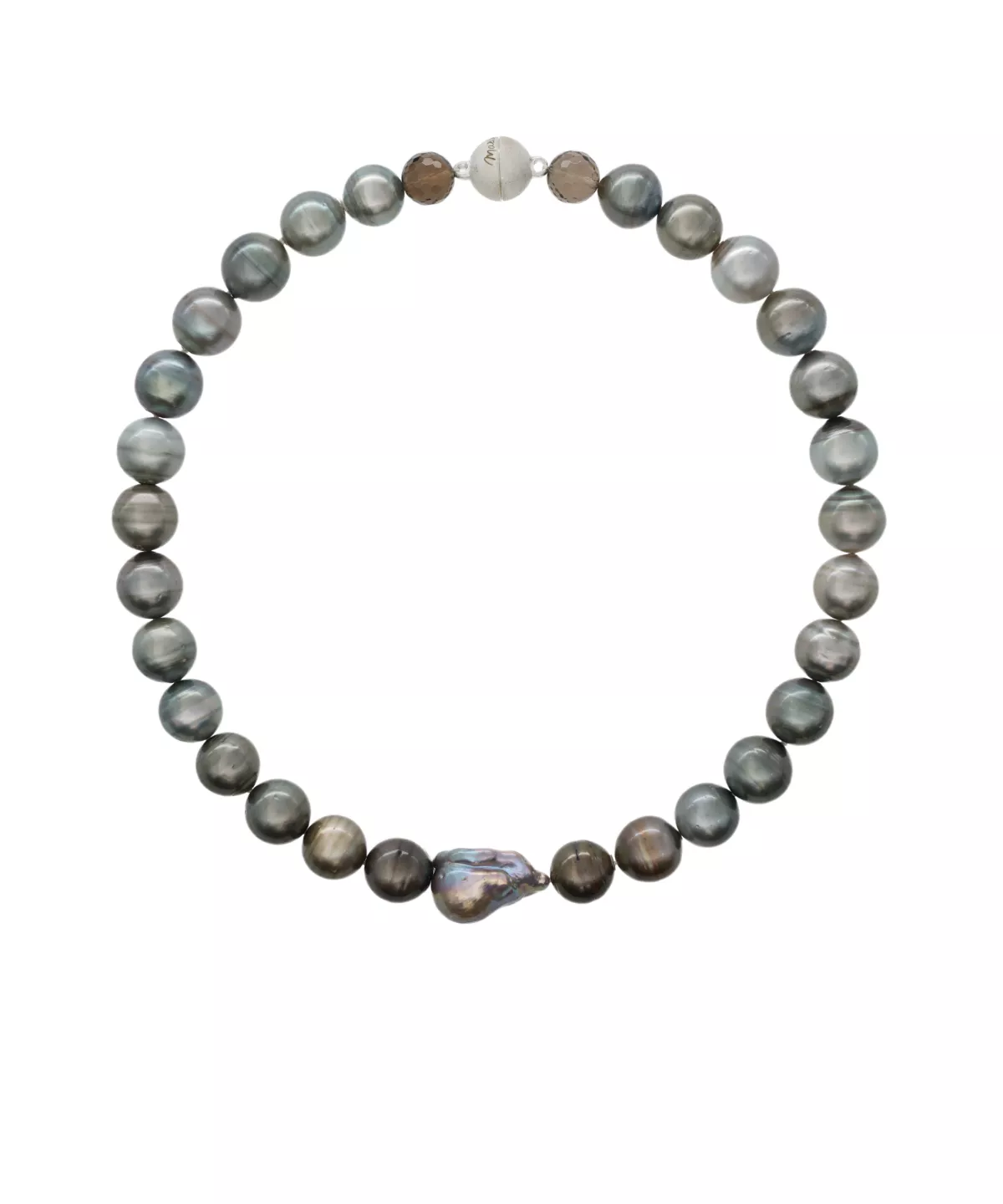 Tahitian Pearls -13,4mm AA, Smoky Quartz, Grey Freshwater Baroque Pearl, 925 Magnetic Clasp, 44 cm Length
