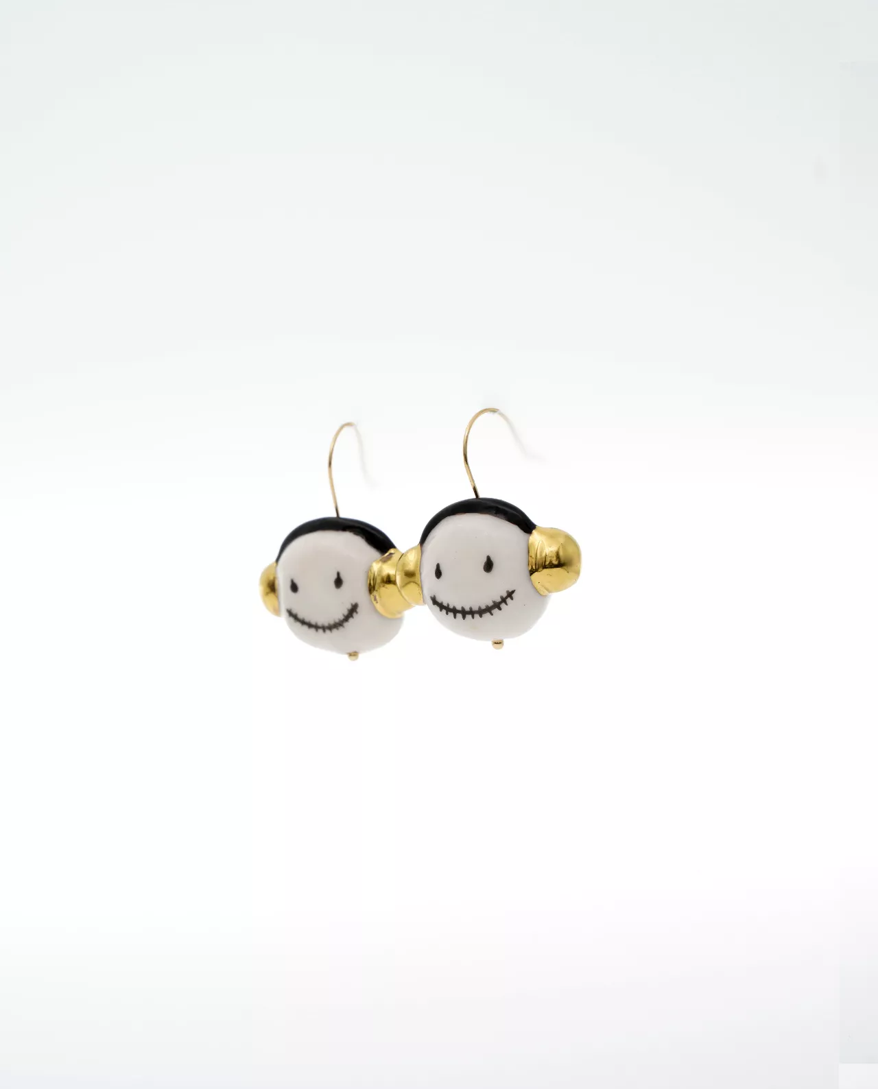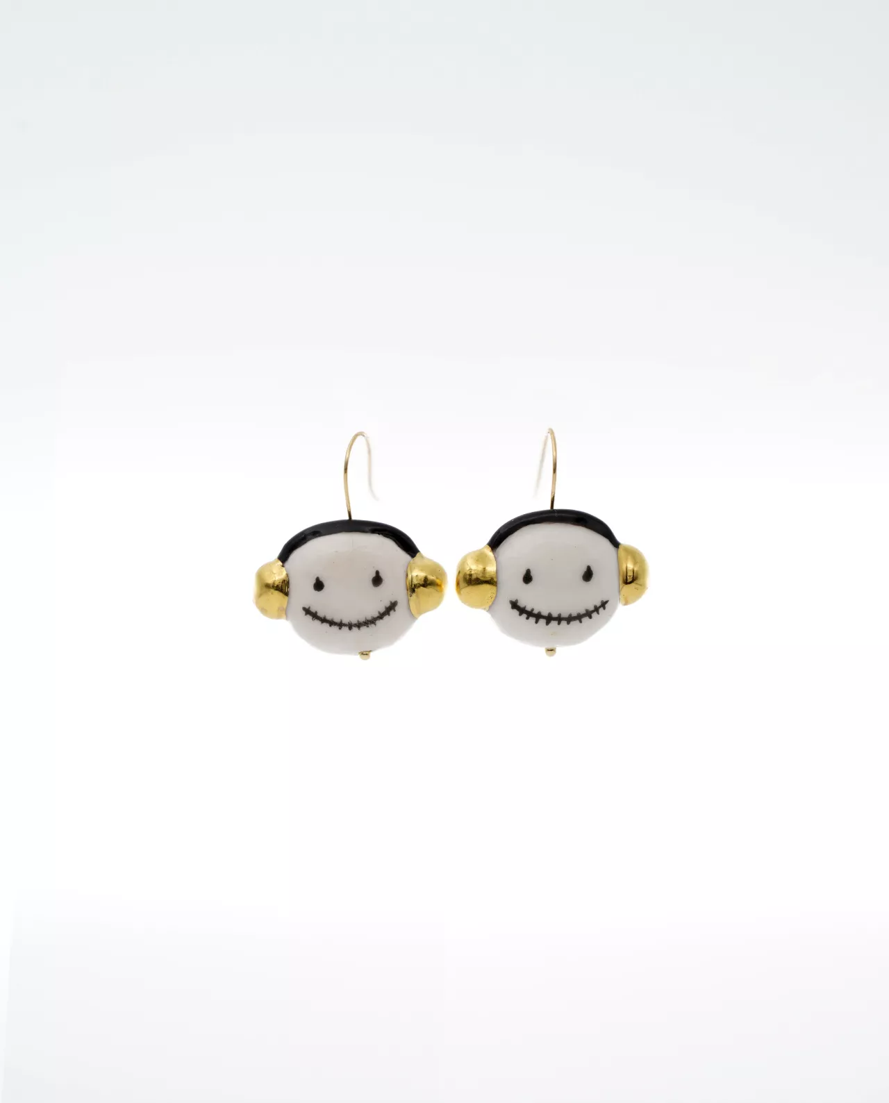 Our porcelain Mojo earrings with 18 karat yellow gold plated headphones are the perfect accessory for music lovers who want a unique and stylish accessory to add a special touch to their outfit.