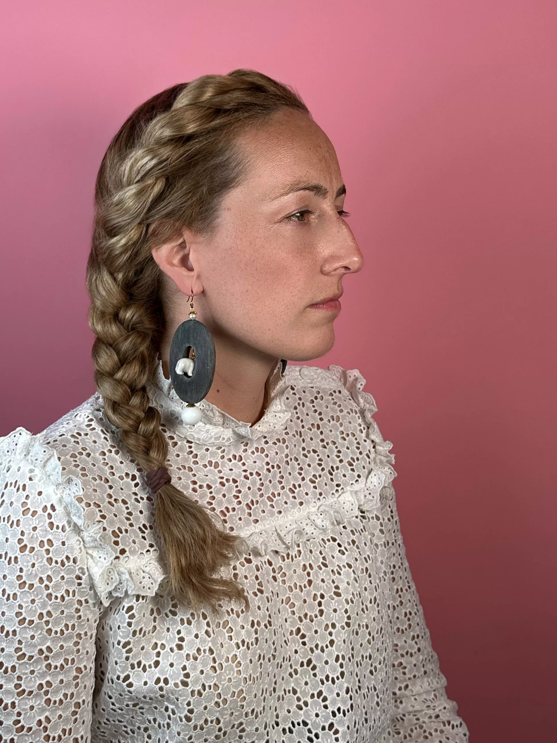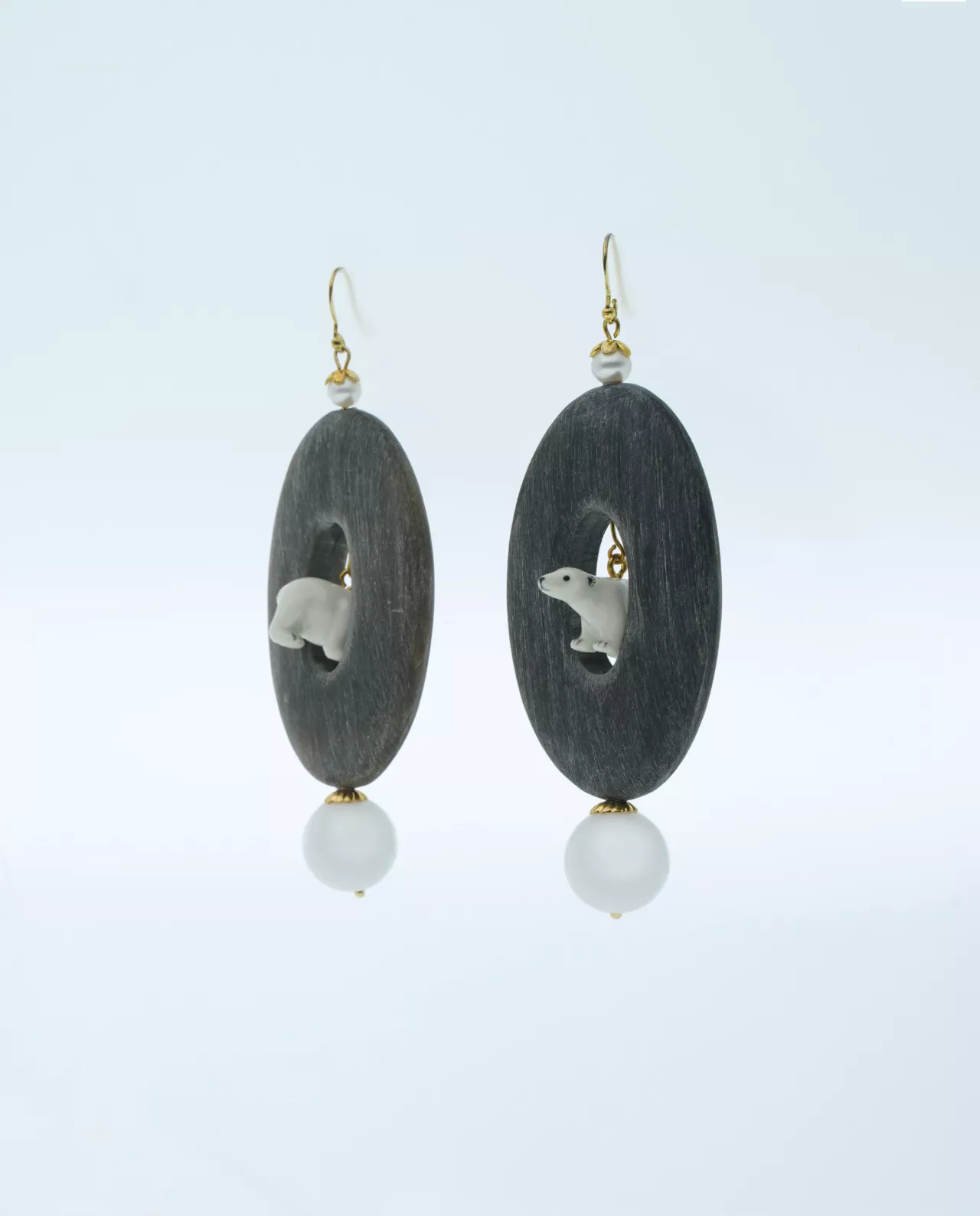 From the Mixed Materials Collection an absolute It -Piece with charm ! These big earrings are really eye-catching and will make everyone who looks at you smile, because you should present the polar bear on one ear from the front and on the other one from the back. Our little handmade porcelain animals always sneak into our designs , we just can’t help it : we love animals ! YOU too ???