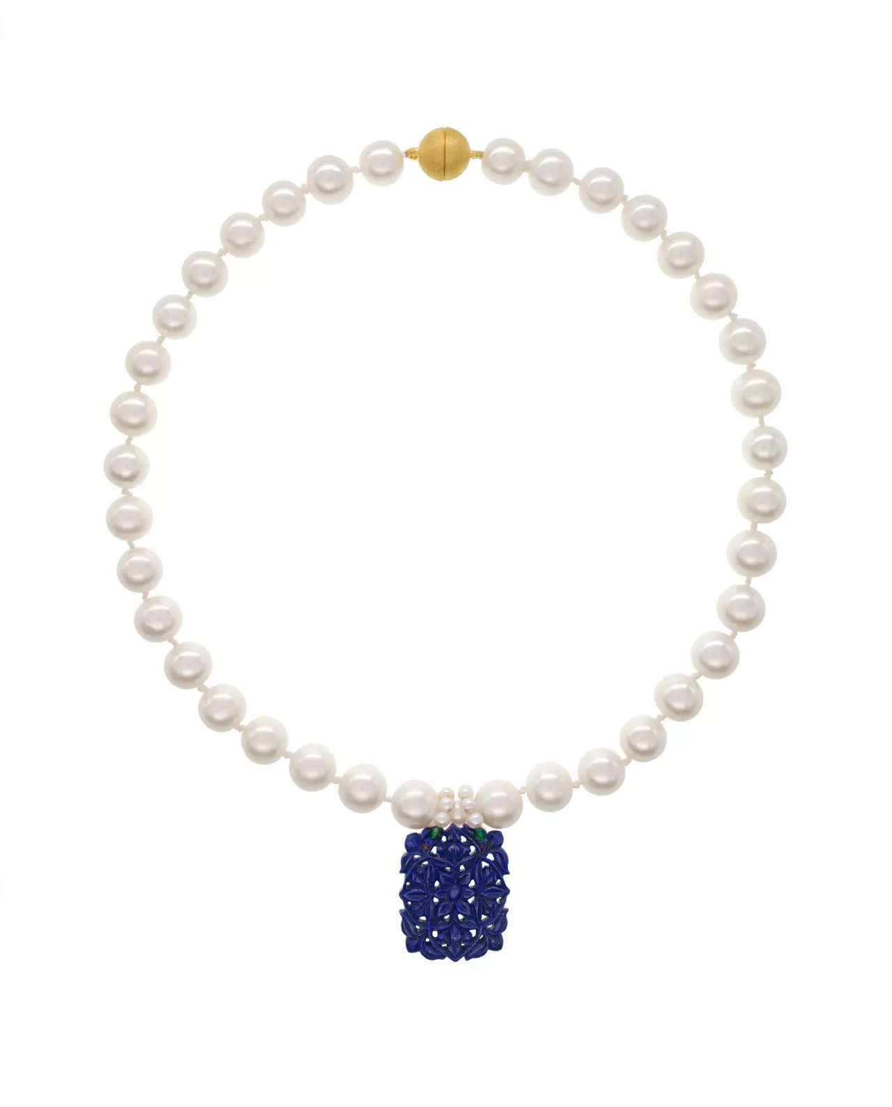 XL Süsswasserperlen, handgeschnitzter Lapislazuli, Jade, Rubilit, 925 Magnetverschluss vergoldet, 50 cm Länge