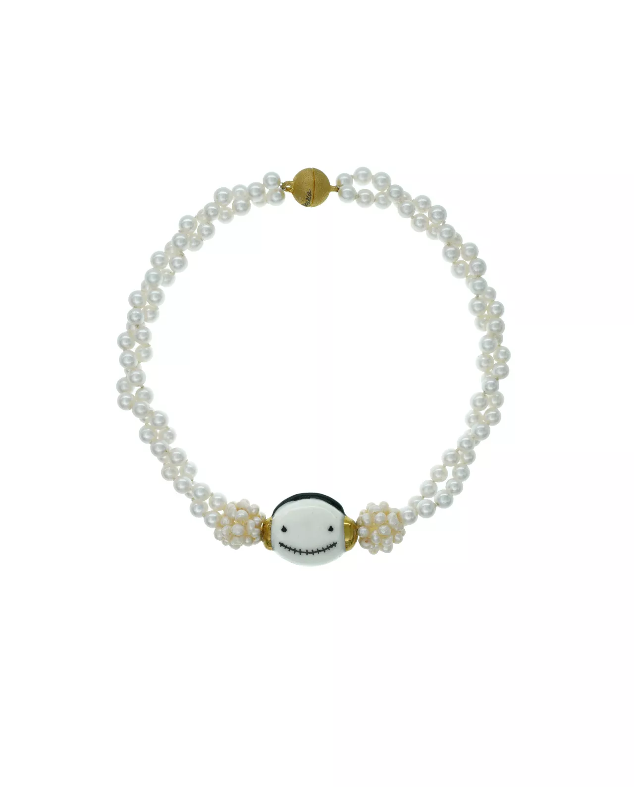 Aus der Mojo Man Collection , eine Halskette aus zarten Akoya Perlen und kleinen Süsswasser Perlen Kugeln, in deren Mitte ein Mojo aus Porzellan hervorschaut. .Mit diesem Collier erhältst du ein einzigartig, charmantes Accessoire, das deinen Look auf den Punkt bzw. auf den Mojo bringen wird !