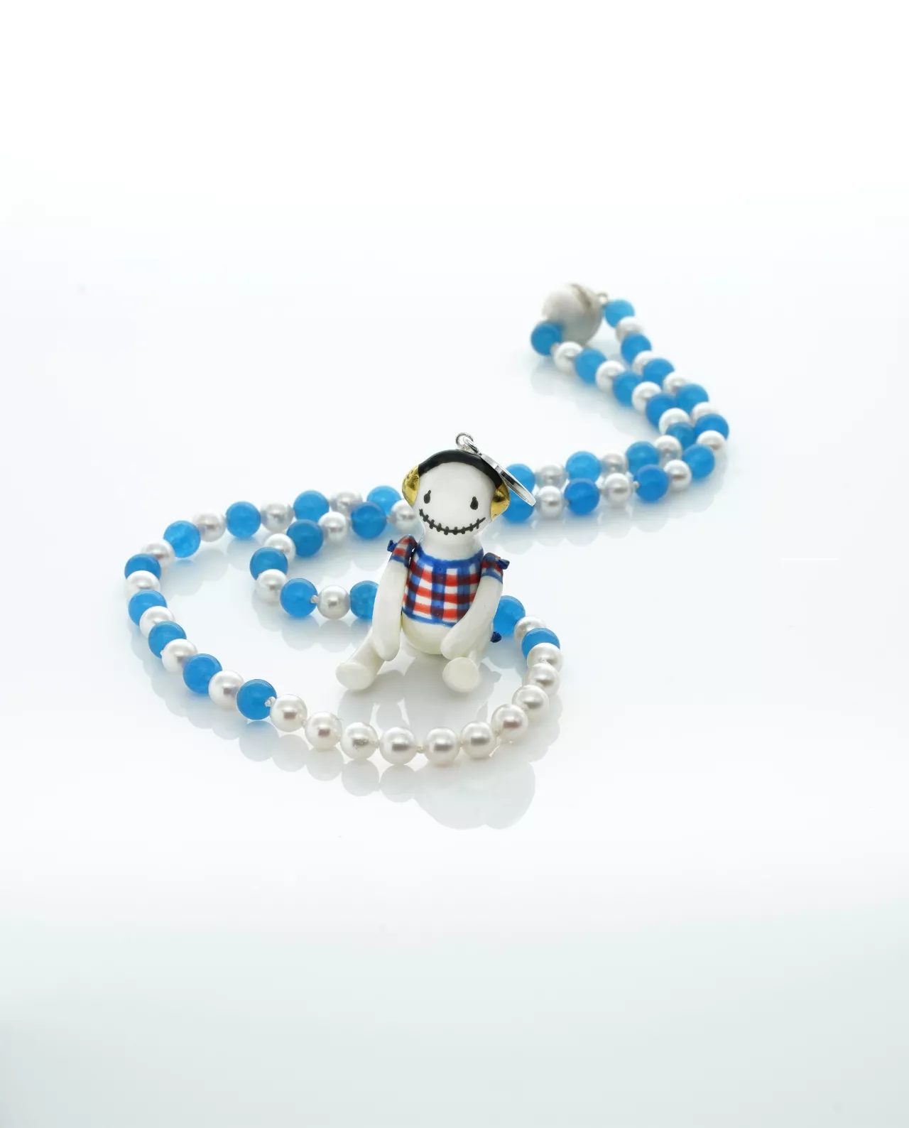 Diese extravagante Kette für Männer aus unserer Mojo Man Collection vereint hochwertige Materialien. Die Kette besteht aus Akoya Perlen in feinem Weiß,türkis blaue Achat Perlen und unserem coolen Porzellan Mojo Anhänger mit seinen 18 Karat vergoldeten Kopfhörern. Mit einer Länge von 50 cm ist sie der perfekte Begleiter für jeden Anlass. Ob als modisches Accessoire oder als edle Geschenkidee, diese Kette ist ein wahrer Hingucker. Wir haben wirklich lange überlegt, was Mann tragen kann und was nicht, aber wir sind zu dem Schluss gekommen, dass Mann fast das Gleiche wie Frau tragen kann und ihm das auch wirklich gut steht !