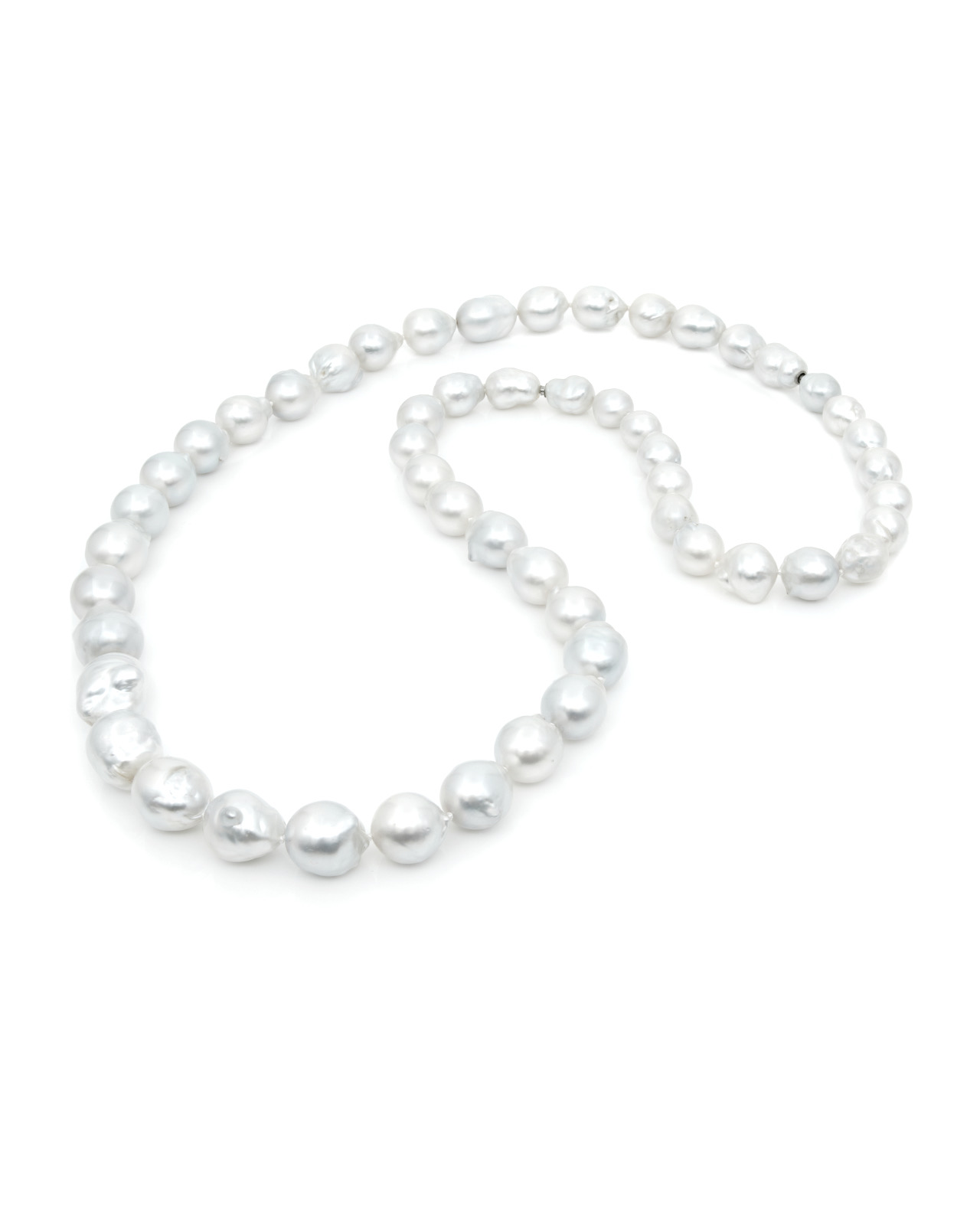 Silbrig schimmernde Südsee-Barockperlen, 77 cm.